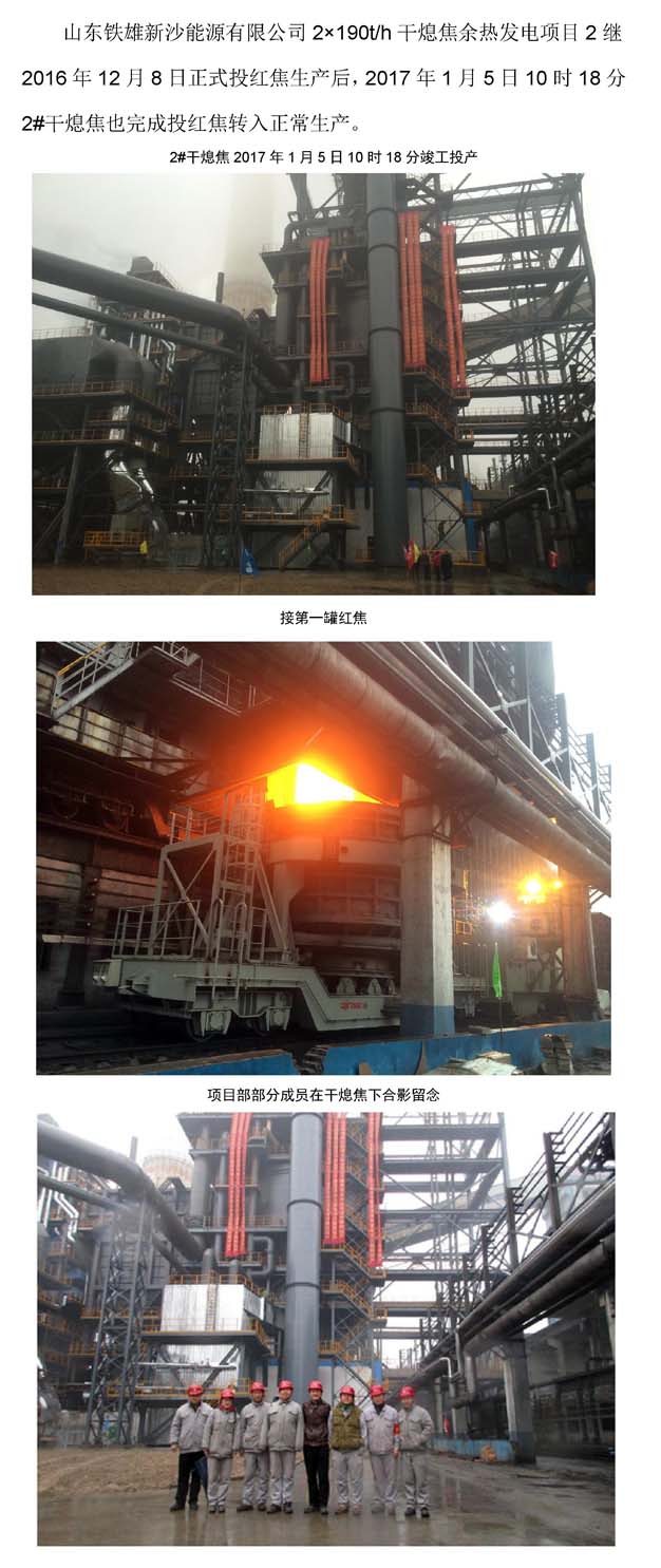 新沙能源有限公司 2×190t/h干熄焦余热发电项目 2#干熄焦系统竣工投产