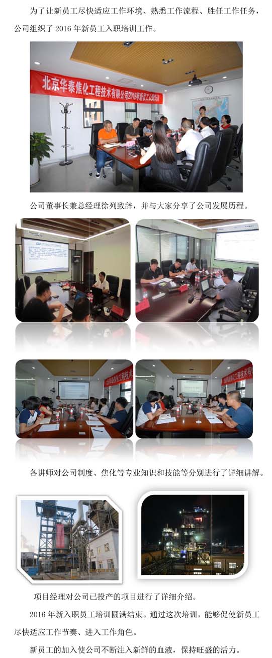 北京华泰焦化2016年新员工培训