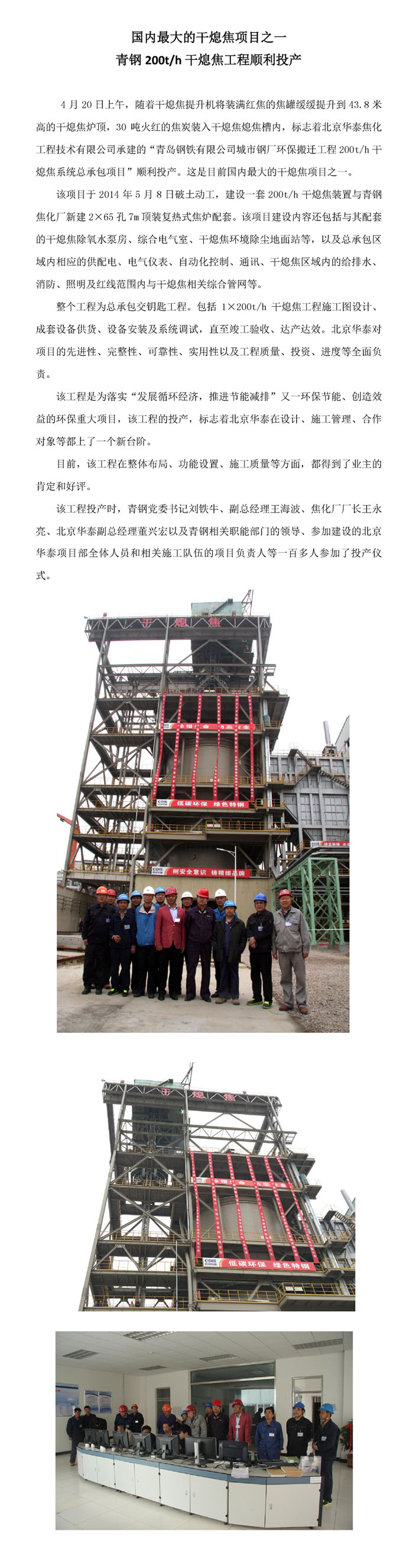 青钢200t/h干熄焦工程顺利投产