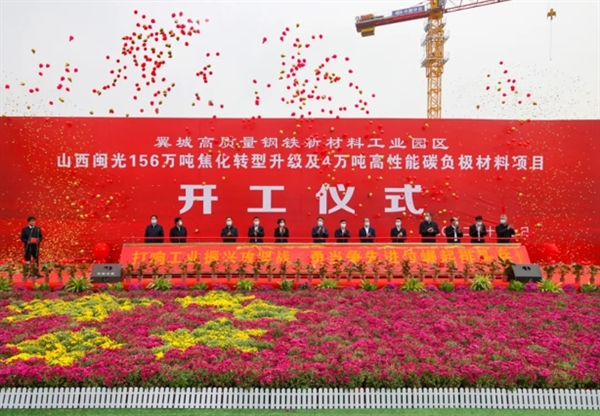 10月7日,山西闽光新能源科技股份有限公司在山西临汾翼城高质量钢铁新材料工业园区举办“156万吨焦化转型升级项目及4万吨高性能碳负极材料项目”开工仪式。市委常委、副市长崔元斌参加活动,并宣布项目启动。县委书记黄晓君,福建省三钢(集团)有限责任公司党委书记、董事长黎立璋,山西闽光新能源科技股份有限公司董事长张邦才等领导参加仪式。杨海林主持仪式。我公司董事长徐列、副总经理邵丰应邀参加这次开工仪式。
